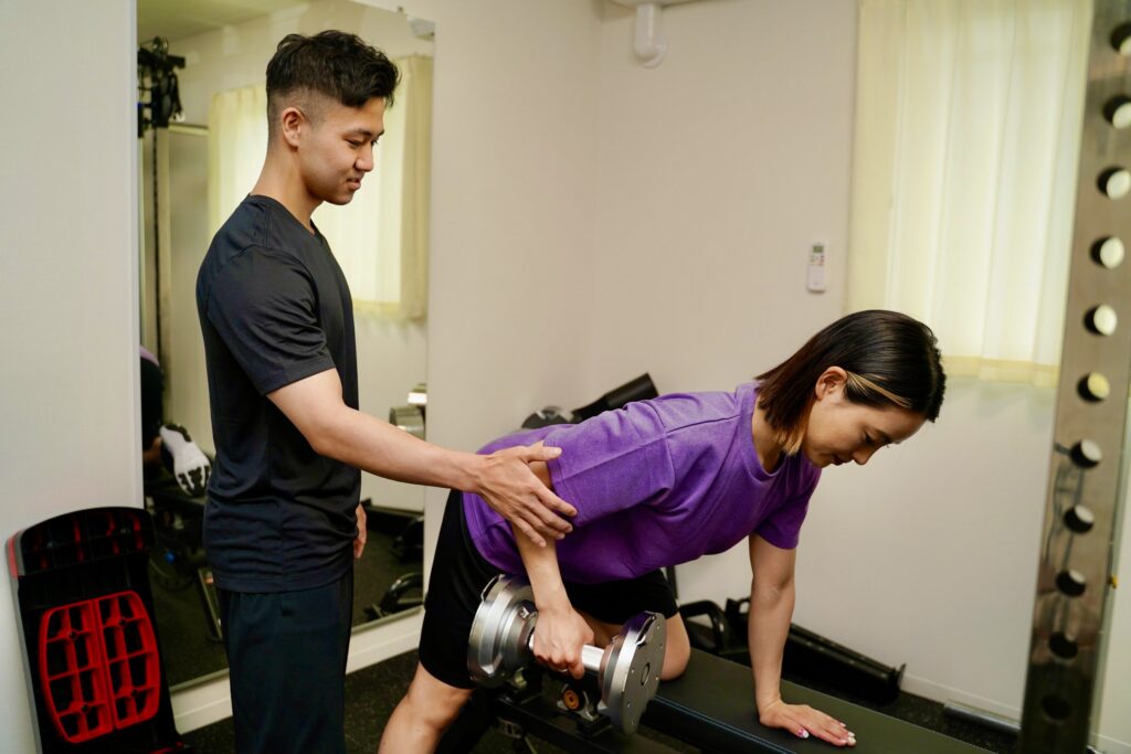 身体のバランスを整えたうえで、正しいフォームでトレーニングを実施。